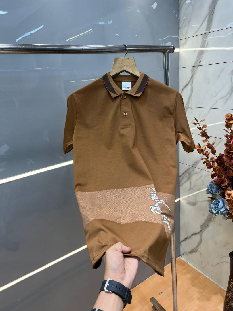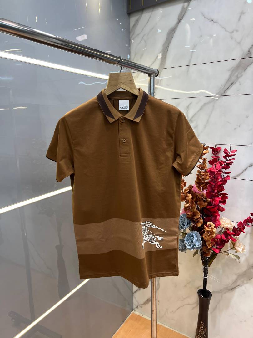 Burberr y Brown Premium Imported 240 GSM Interlock Lycra Fabric Polo Tshirt with Collar Design and Emboss Logo 4056