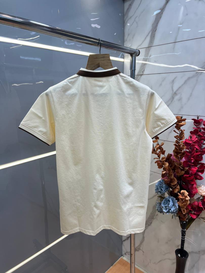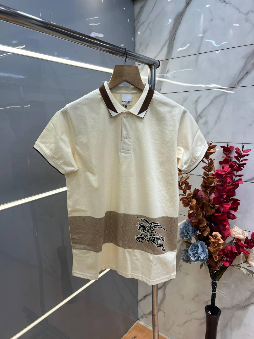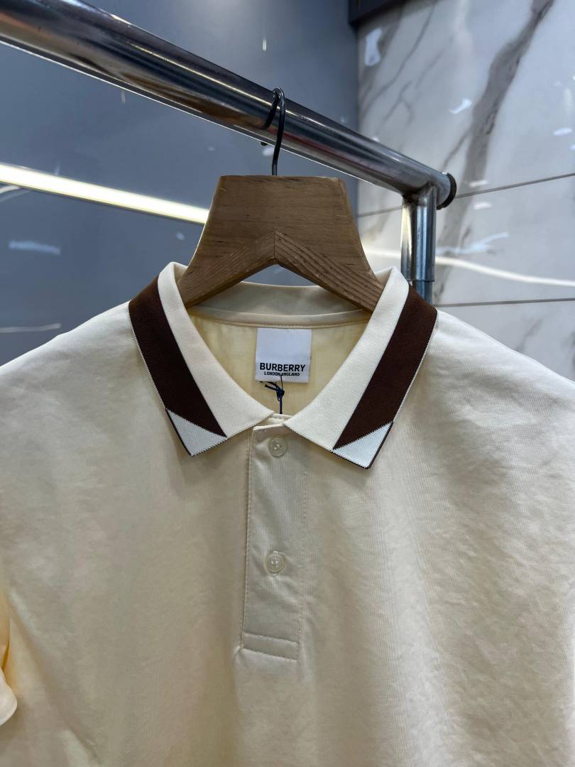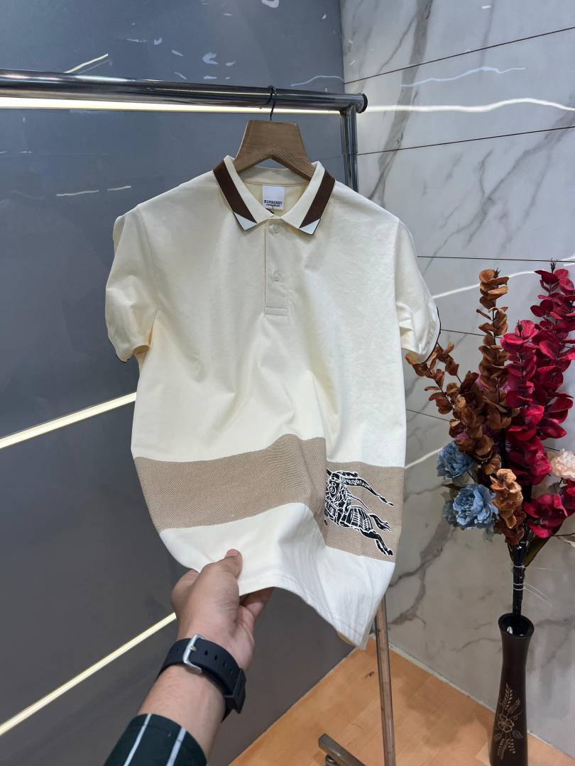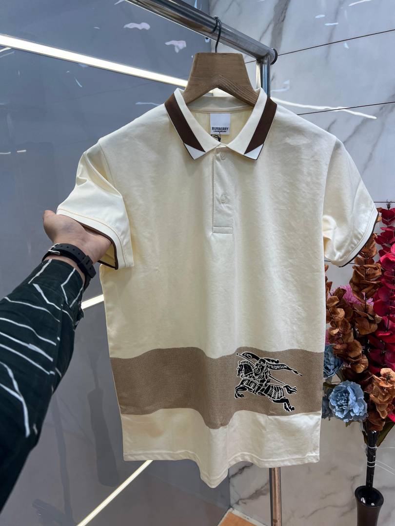 Burberr y Cream Premium Imported 240 GSM Interlock Lycra Fabric Polo Tshirt with Collar Design and Emboss Logo 4055