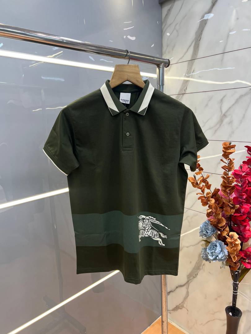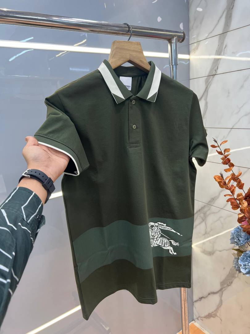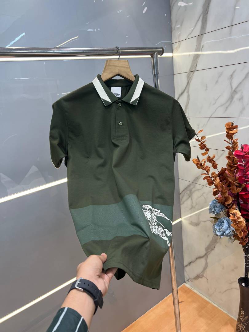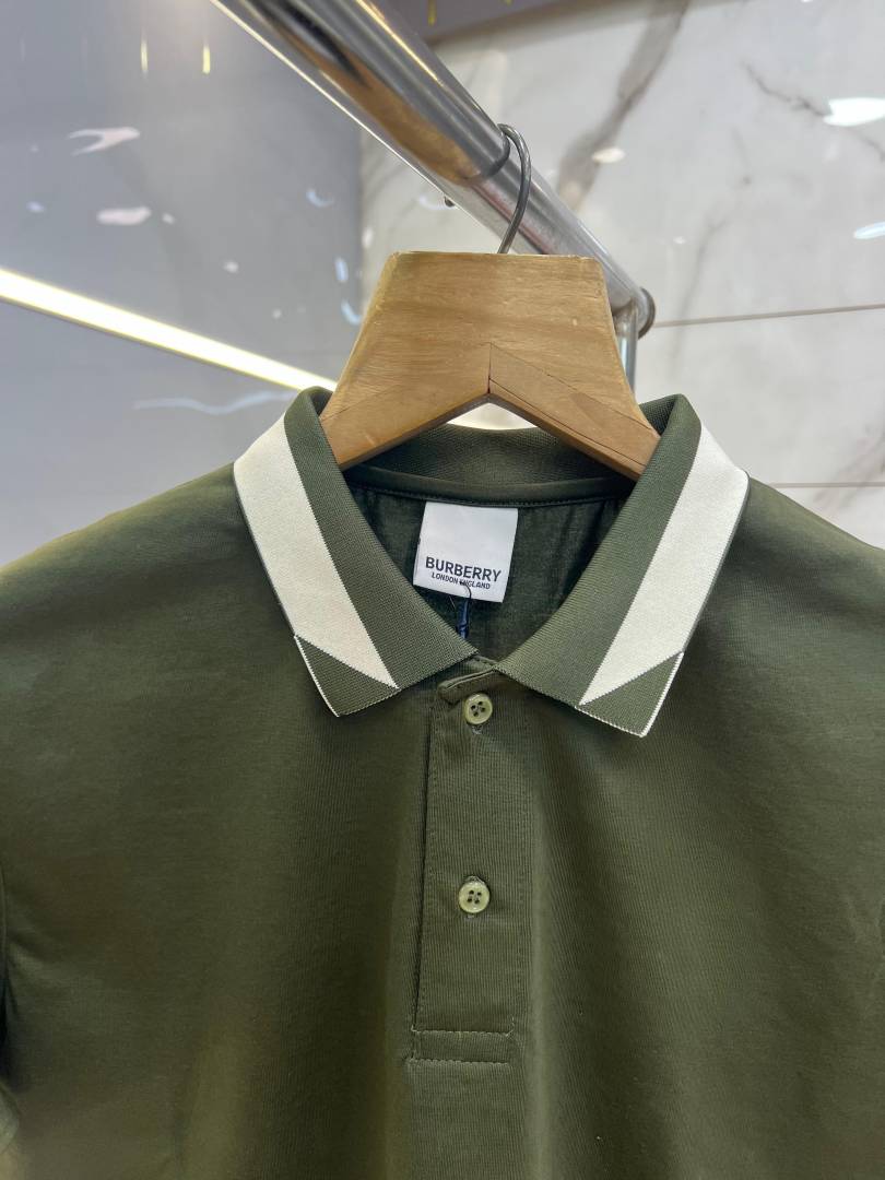 Burberr y Green Premium Imported 240 GSM Interlock Lycra Fabric Polo Tshirt with Collar Design and Emboss Logo 4057