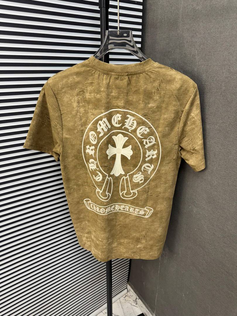 CHROME HEART BEIGE IMPORTED FABRIC CURRENT STORE ARTICLE VERY PREMIUM ROUND NECK TSHIRT 489