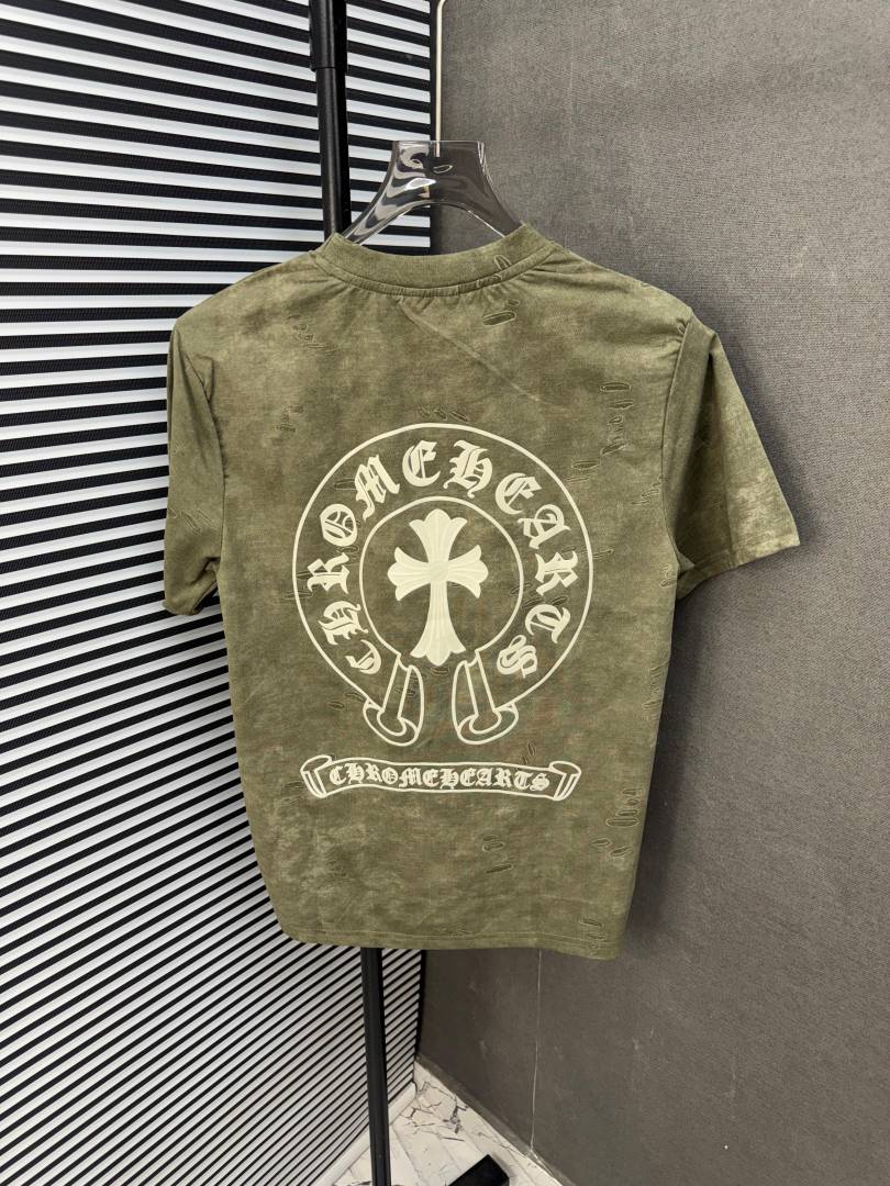 CHROME HEART OLIVE IMPORTED FABRIC CURRENT STORE ARTICLE VERY PREMIUM ROUND NECK TSHIRT 489