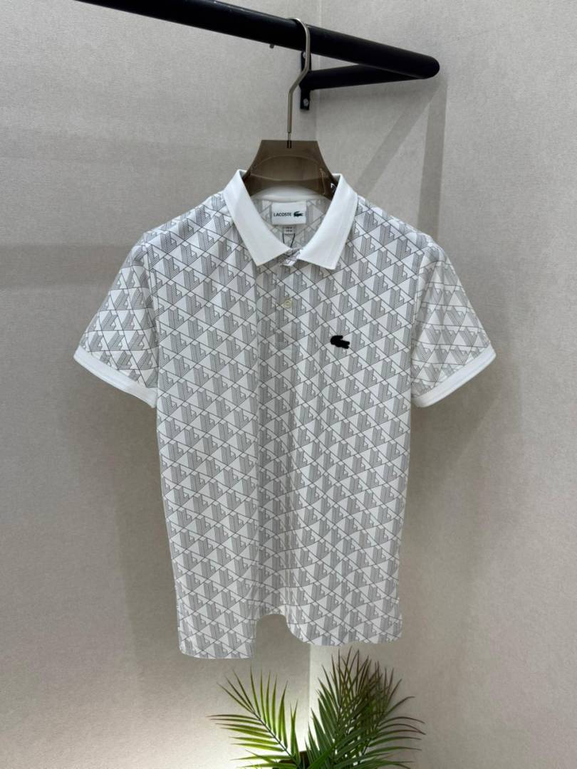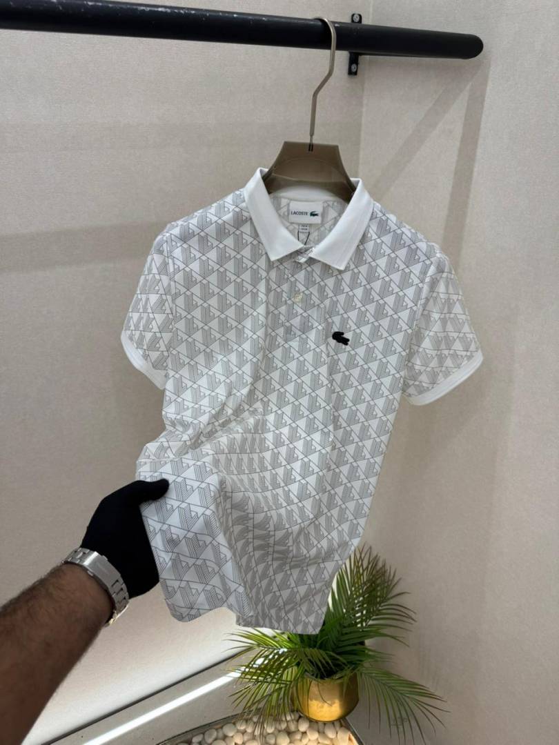 Lacost e White Monogram Premium Collar Neck Polo T-shirt With Brand Box Packing F3639-WH